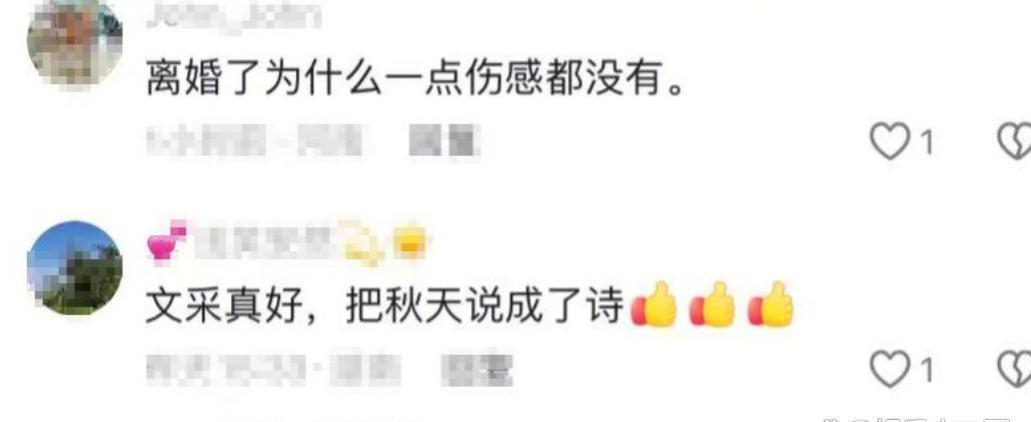 她在公园里也没闲着, 带了个小竹篮子,还有剪刀湿纸巾什么的, 在捡地上的落叶, 说是准备拿回去做成相框, 这个看起来倒是挺有生活品味的, 她这一个人沐浴着阳光,捡叶子,全程脸上都带着笑, 笑得挺灿烂的, 这就让有些人觉得有点奇怪了, 评论区就有人问,怎么刚离婚,一点伤感的意思都没有呢,